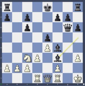 Mariia Averkova gewann ihre Partie gegen Tugce Türel, die eigentlich die ganze Partie über besser stand, aber dann eine Figur einstellte. Mariia bleibt damit Tabellenführerin vor Julia Schwarzfischer. Beide haben 5 aus 6 Punkten und sind nur durch einen Buchholzpunkt getrennt. Auf Platz 3 und 4 folgen mit je 4 aus 6 Punkten Nataliya Movchan und Valentina Neumeier. Das Oberpfälzer Duell zwischen den beiden guten Freundinnen Julia und Valentina an Brett 2 dürfte besonders interessant werden. Aber auch das Ergebnis am „ukrainischen“ Brett 1 zwischen Mariia Averkova und Nataliya Movchan verspricht Spannung pur. Und insgesamt wäre es ein besonderer Erfolg für das U16w-Turnier, wenn in der Schlussrunde niemand statt ans Schachbrett zum Bogenschießen geht.