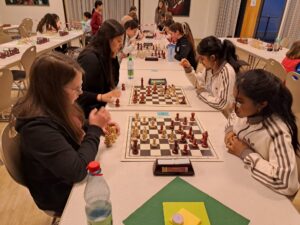 Amelie Werner und Sara Vignesh trennten sich in der Finalrunde remis. Smrithi Suryaprakash gewinnt an Brett 2 gegen Sarah Gubler, aber es reicht ganz knapp nicht. Amelie Werner nimmt den Meistertitel in der U14w mit nach Garching. Für Smrithi bleibt der Vizetitel und die DJEM-Qualifikation.
