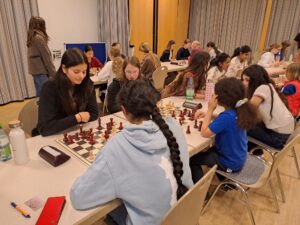 Die erste Partie der U10w war heute nach ca. 15 Minuten beendet. Renata Aliyeva unterlag der gesundheitlich stark angeschlagenen U8w-Spielerin Alexandra Movsesyan.